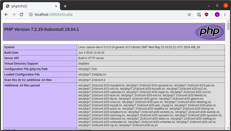 Na minha máquina também estava utilizando o PHP na web, que é utilizado para exibir páginas de websites, para obter as informações de execução abri um arquivo com a extensão .php e digitei o seguinte código: